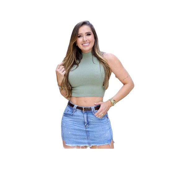 Saia Palazzi Jeans curta com cinto incluso com lycra