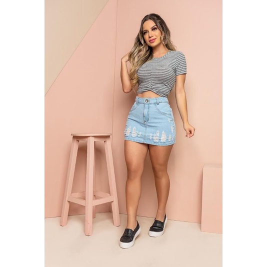 kit 7 Saias Jeans Cintura Alta Atacado Hot Pant