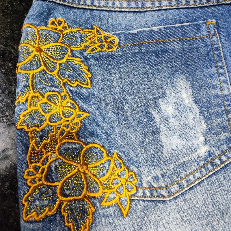 Saia clearance jeans enjoei, Saia Jeans Bordado Flores Sommer Saia Feminina Sommer Usado clearance