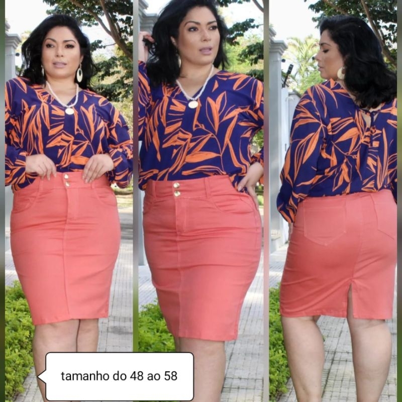 Saia clearance tamanho 48, Saia em Brim Plus Size secretaria Moda evang lica do 48 ao 58 clearance
