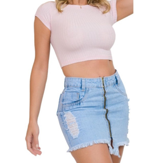 Saia clearance jeans puida, Mini Saia Jeans Curta Destroyed Feminina Minissaia Clara Escura clearance