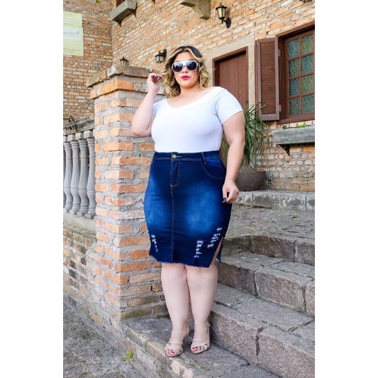 Saia clearance tamanho 46, Moda Plus size Bela Gondin Saia jeans . . Tamanho Do 46 ao 54 clearance
