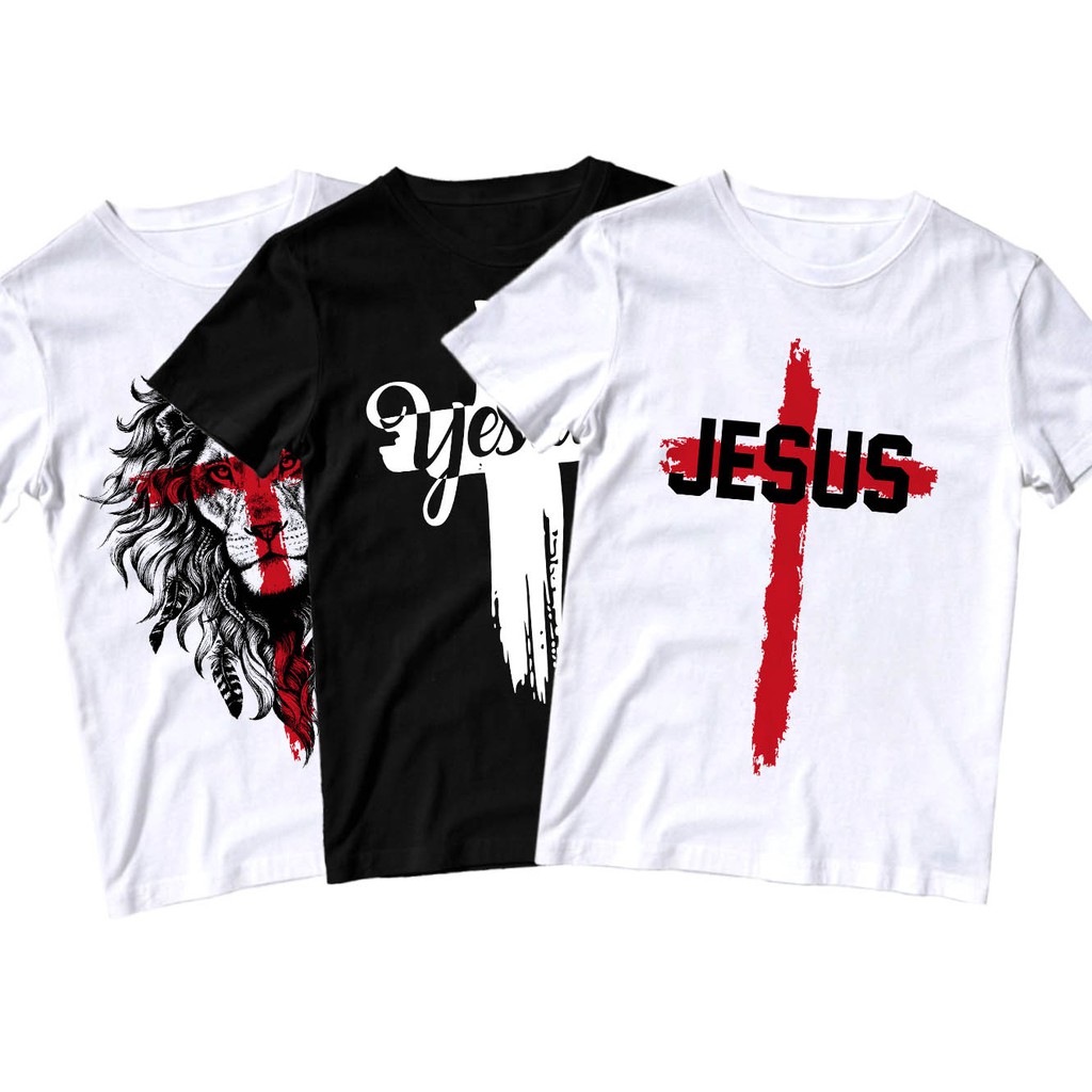 Kit 3 Camiseta Masculina Estampada Evang lica Igreja C lula Blusa Jesus Cristo Grupo Jovens Le o de Jud Cruz F Yeshua