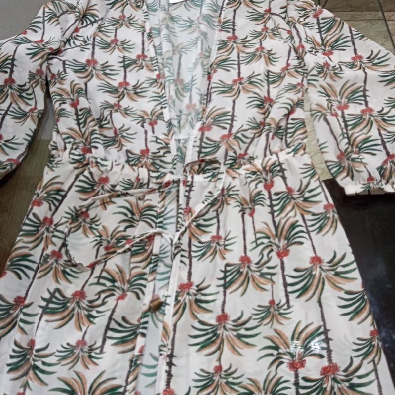 kaftan longo coqueiros manga longa bufante verde escuro C A