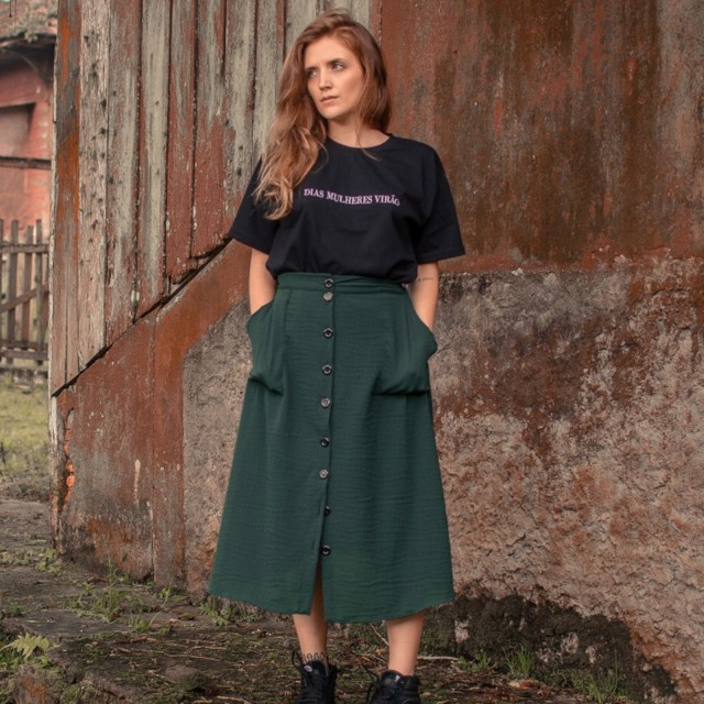 Saia Longa Linho Verde Militar Cilene