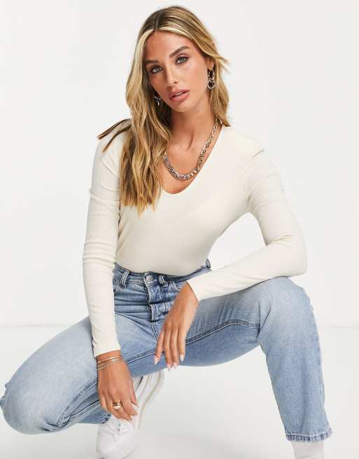 Vero Moda AWARE Body met V hals en lange mouwen in cr me