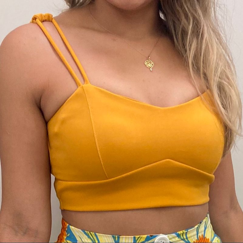 Cropped Top Blusa Amarelo Moda Feminina Roupa Blusa Feminina