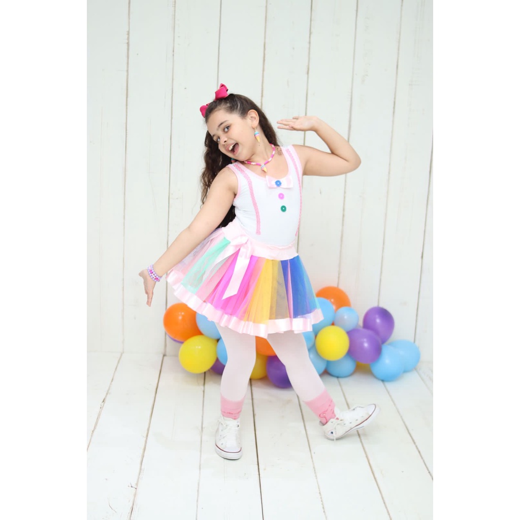 Fantasia de Palhacinha 1 body ou camiseta 1 saia de tule colorida