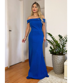 Vestido Longo Azul Royal Azul Bic Ombro A Ombro Modelo Sereia E