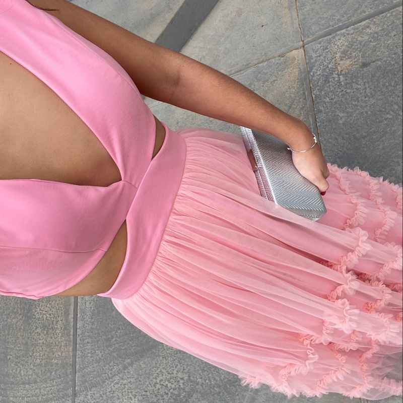 Vestido de festa longo rose rosa claro madrinha casamento