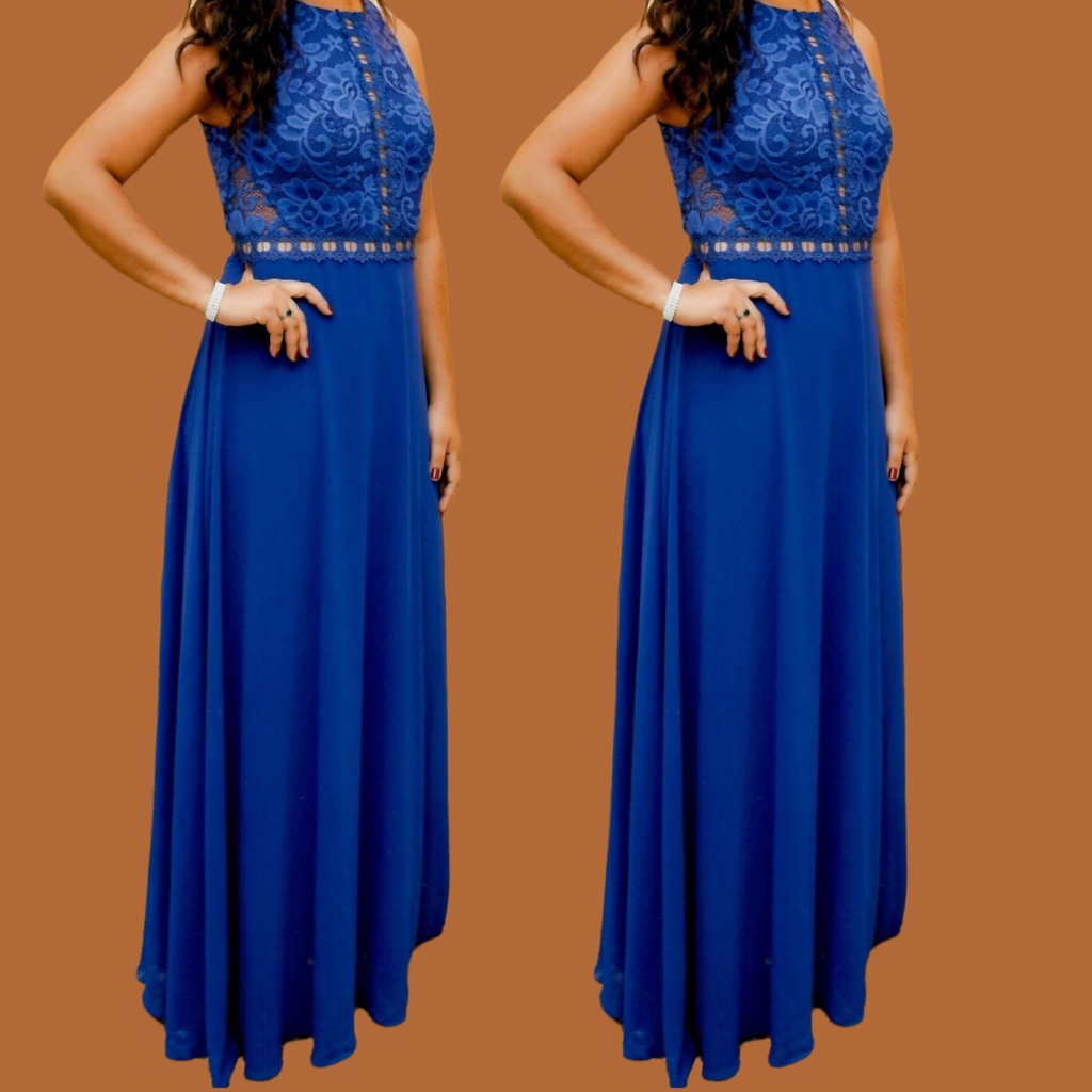 Vestido de Festa Longo Azul Royal Casamento Formatura Madrinha