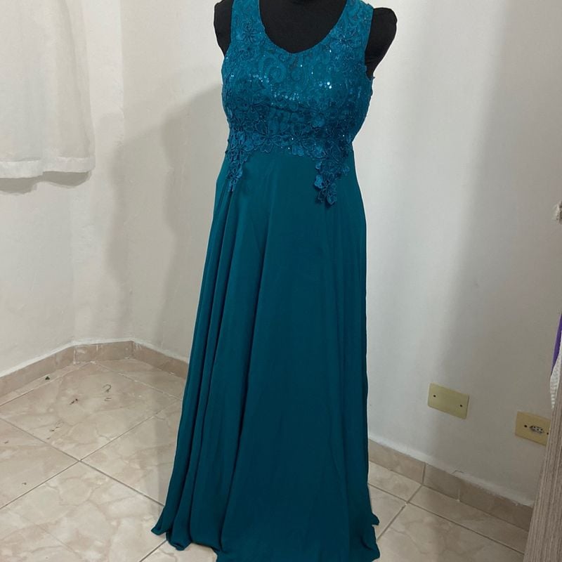 Vestido Longo Festa Madrinha Casamento Azul Turquesa Vestido