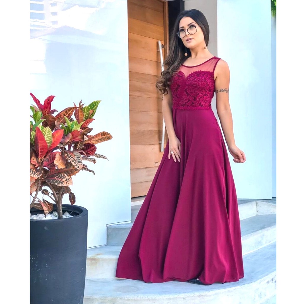Vestido longo festa clearance cor marsala, vestido longo marsala de festa madrinha de casamento m e de noivos formandas 15 anos eventos clearance