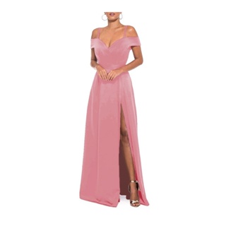 Vestido longo de cetim para clearance madrinha rose, Vestido de Madrinha Longo Fenda Alcinha de Amarrar clearance