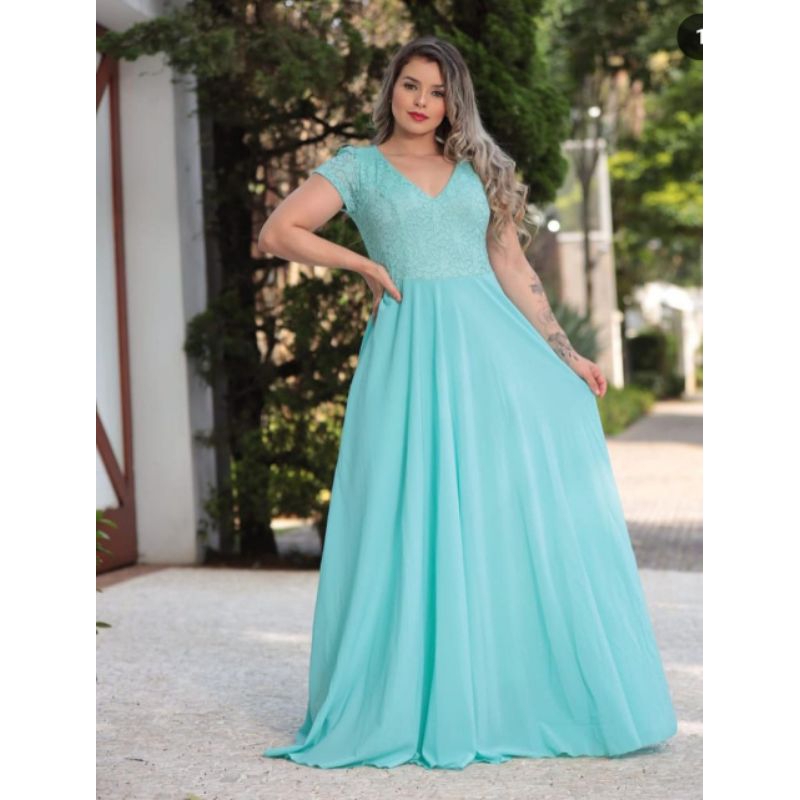 Vestido clearance madrinha evase, Vestido de Festa Longo Verde em Devor Impression Modas clearance
