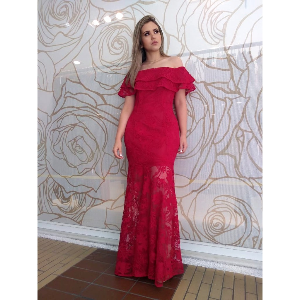 VESTIDO LONGO OMBRO A OMBRO BABADO RENDA
