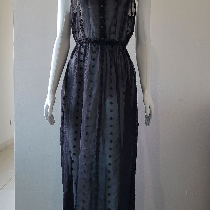 Vestido Longo Preto Transparente Bordado Vestido Feminino Usado 85757862 enjoei