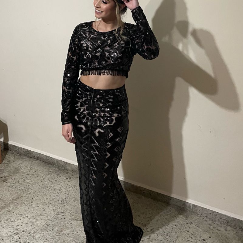Vestido Longo Pedraria e Paete Preto Vestido Feminino Usado