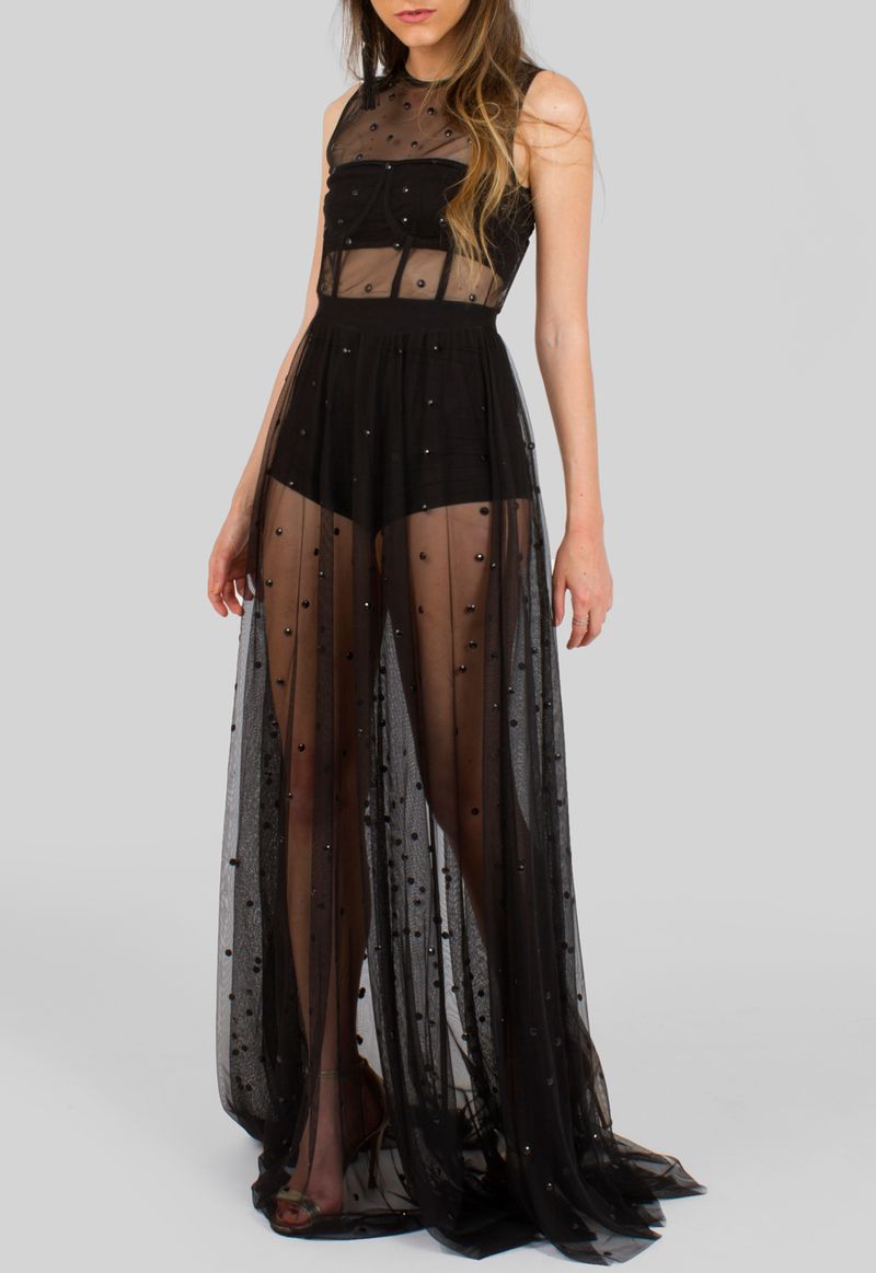 Vestido preto com clearance pedras longo, Vestido Chicago longo Powerlook preto clearance