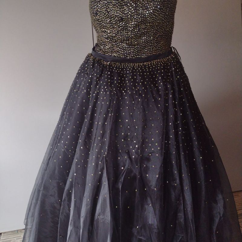 Vestido Debutante 2 em 1 Preto e Dourado 1 Vestido Curto Dourado