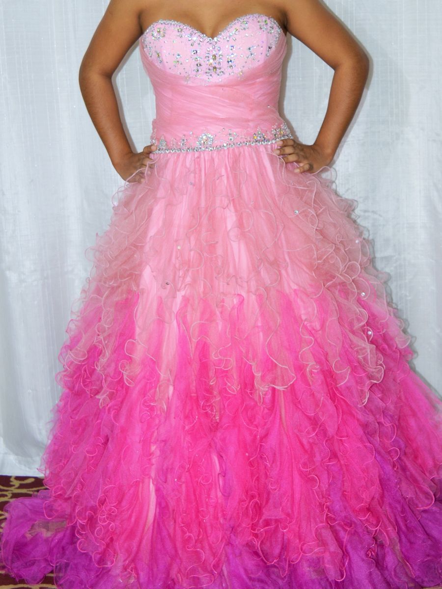 Vestido Longo de Debutante Rosa Degrad em Tule Bordado com