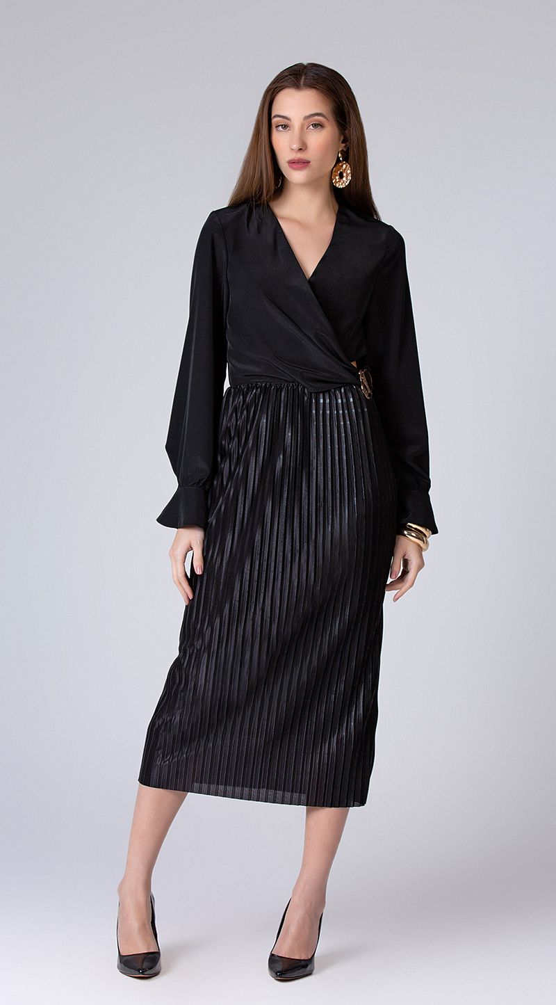 Vestido Maria.Valentina Midi Decote Transpassado Plissado Preto