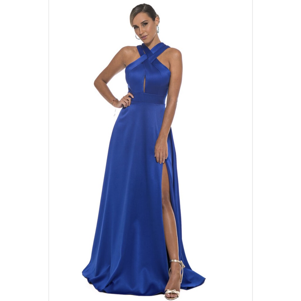vestido longo azul royal azul bic modelo social festa casamento formatura