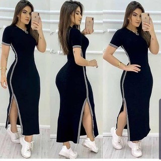 Vestido Longo Tubinho Fenda Manga Viscolycra