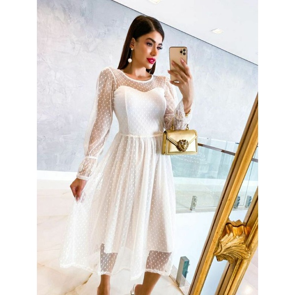 vestidos vestido midi branco lasie manga bufante 34 Moda