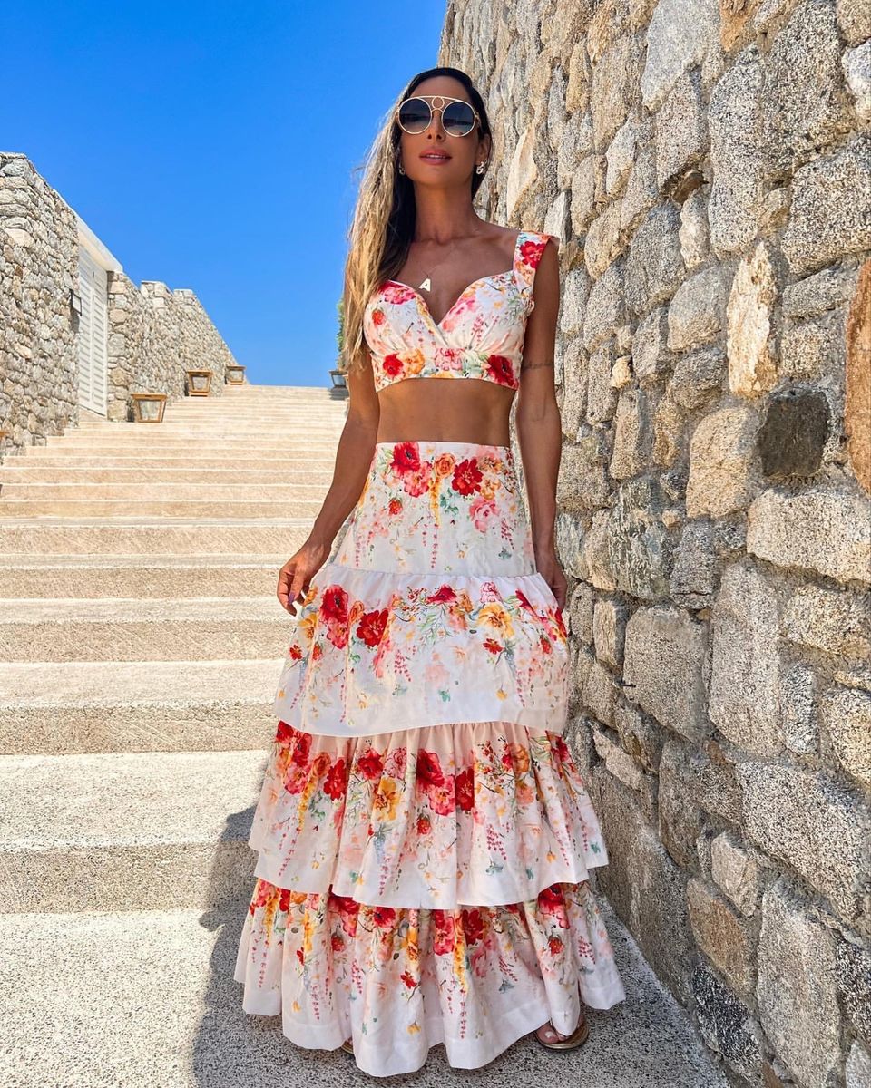 Conjunto Cropped e Saia Longa Estampa Floral Saia Feminina
