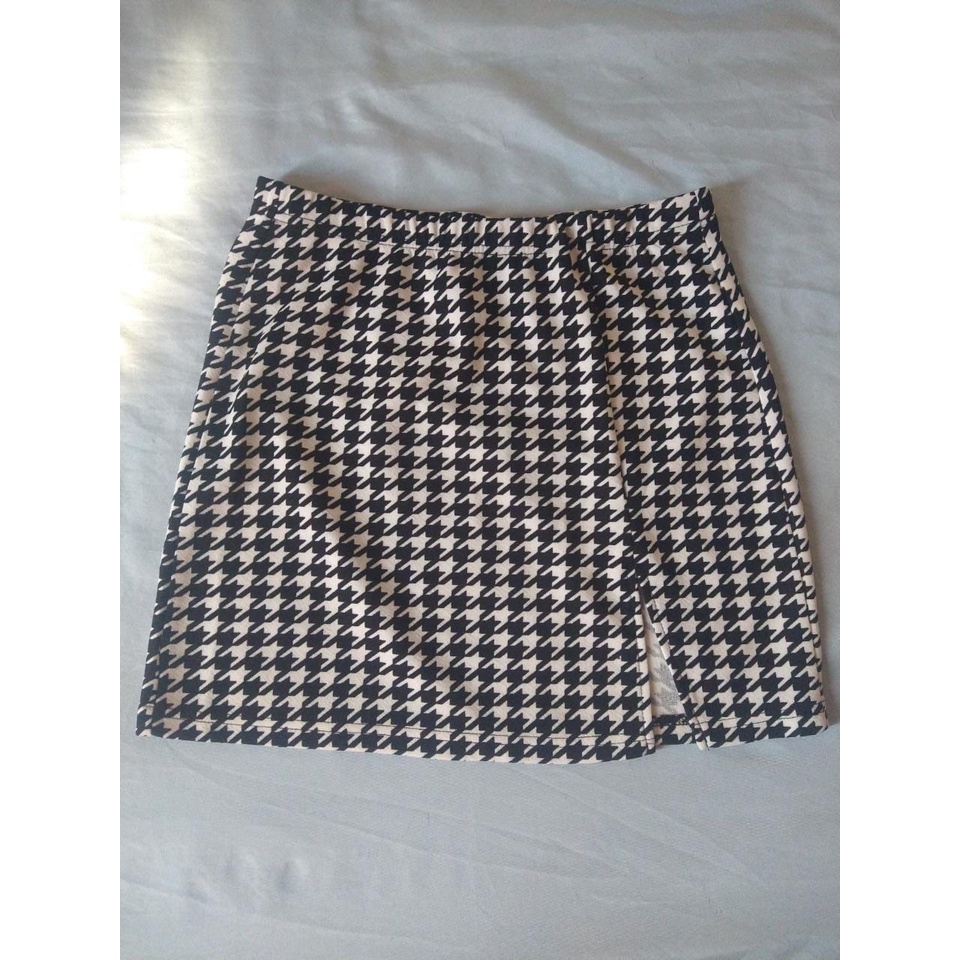 Saia Curta Minissaia Preta e Branca Com Fenda SHEIN