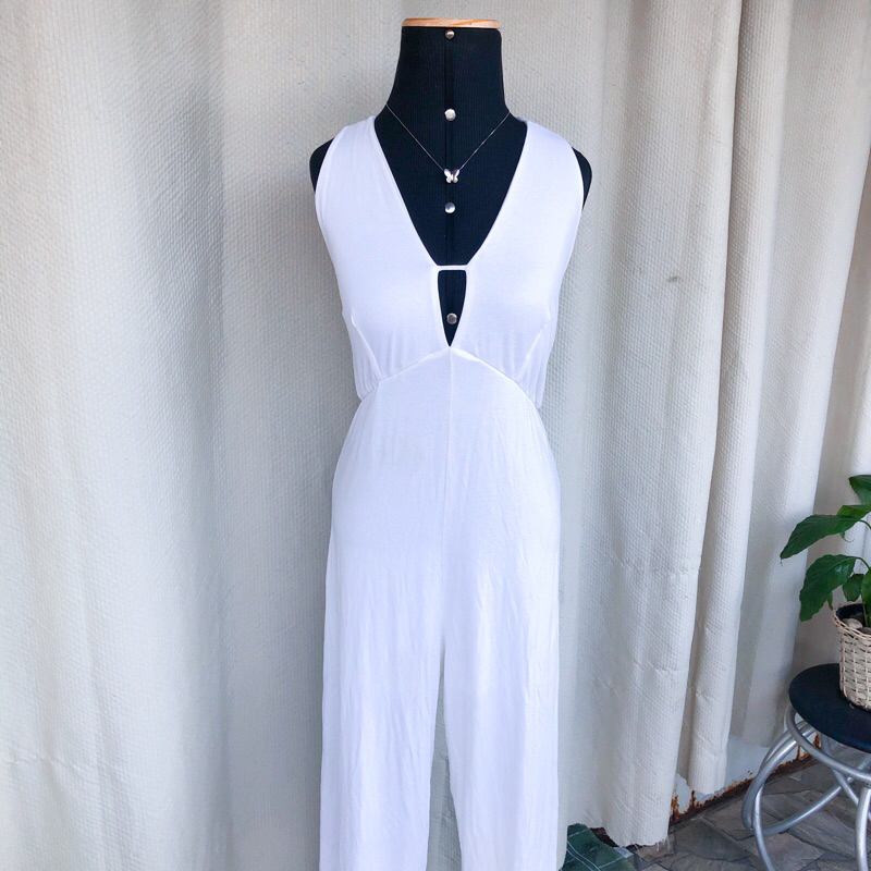 Macac o Branco AQUAMAR Decote V Costas Nuas Moda Feminina Brech
