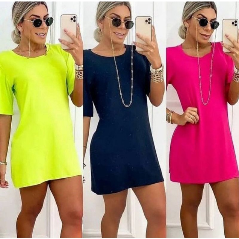 Kit 2 Vestidos Estilo Camiseta Feminino Slim Fitness Moda