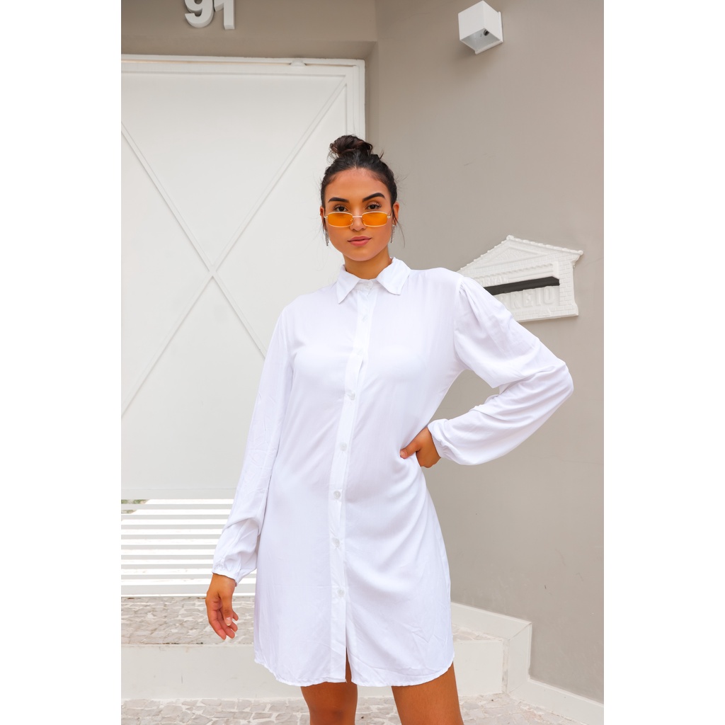 Camisa Feminina Social Chemise Vestido Elegante Manga Longa