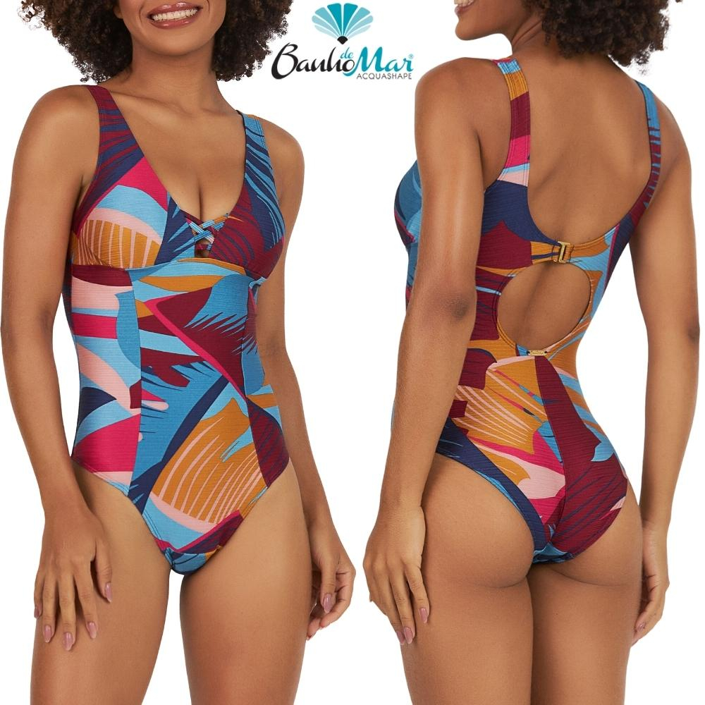 Maio Banho de Mar Alca Fina Com Bojo Zero Barriga Modela e Reduz Moda Praia Estampado Fio Dental