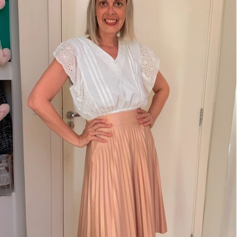 Saia Plissada. Nude. Maravilhosa Saia Feminina Estilo Atual Moda