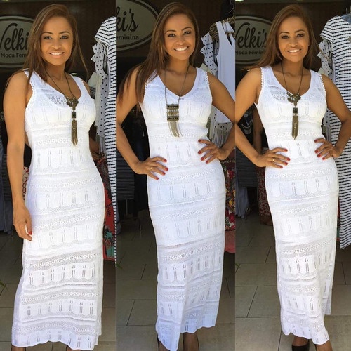 Saida de praia clearance longo de renda, Vestido Longo De Renda Tricot Sa da De Praia Promo o Shopee clearance