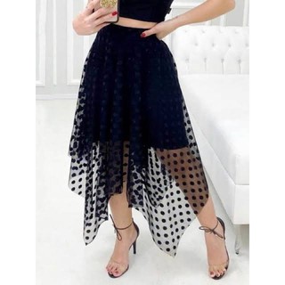 Saia Feminina Tule Poa De Bico Cintura Alta Moda Evangelica