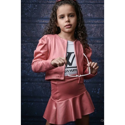 Conjunto Infantil Menina em Cirr Jaqueta Saia 1 a 2 anos