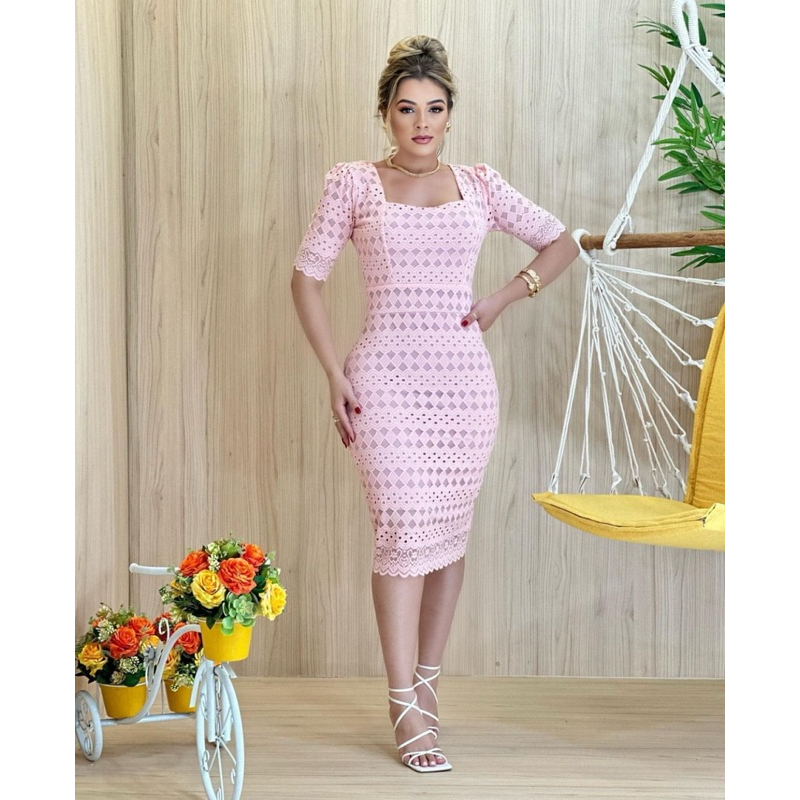 Vestido Rose Renda Gripe Todo Forrado Vai Te O Joelho Tamanho M