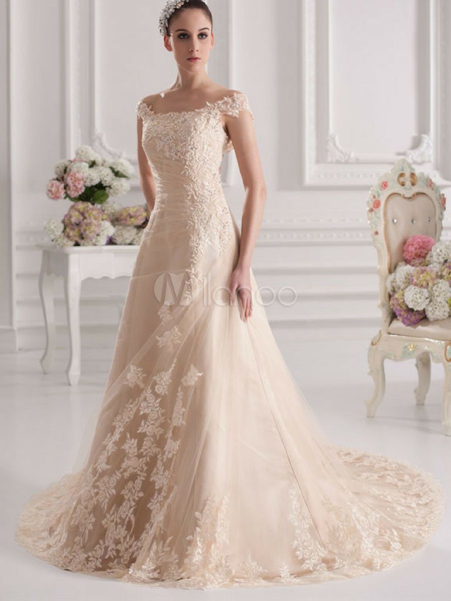 Vestido Noiva Boho Renda Chantilly Cor P rola Elo7