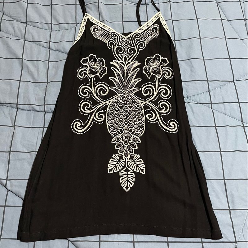 Vestido Preto com Renda Branca de Abacaxi Vestido Feminino