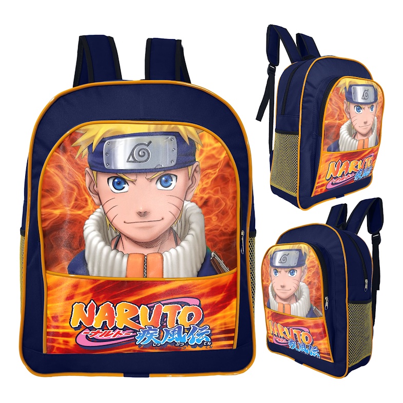 Mochila Escolar Infantil Grande Naruto Classico Azul Amarelo