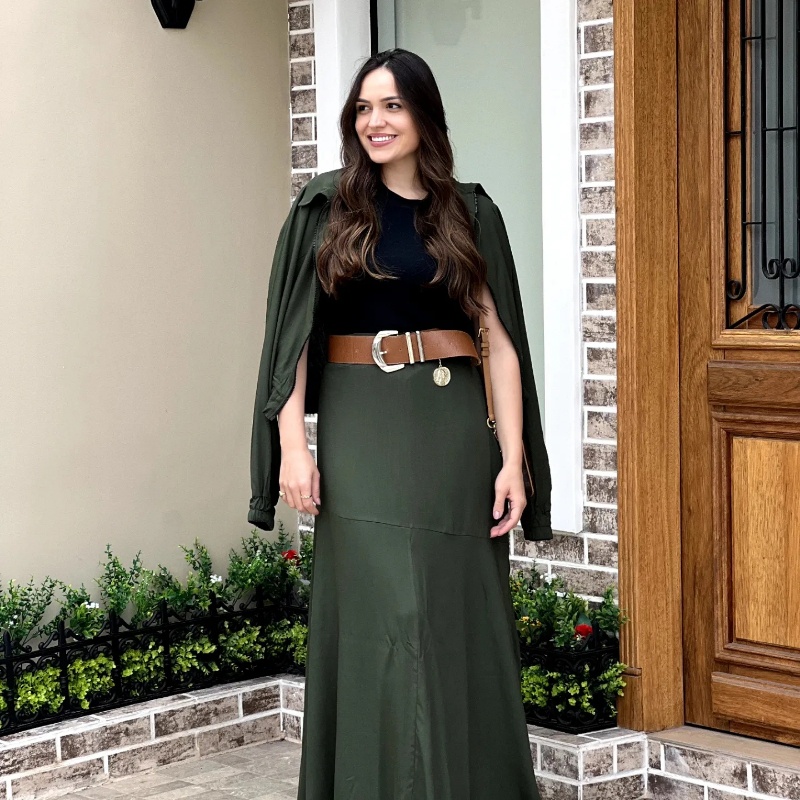 Saia Longa Luiza Verde Militar Estilo de Vestir
