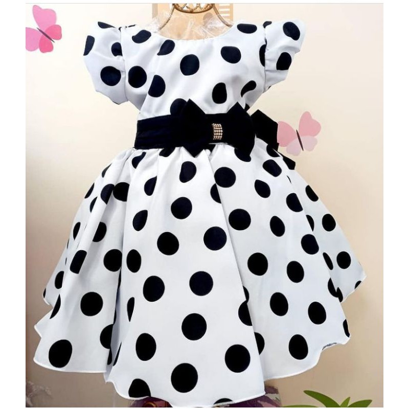 Vestido Tem tico de Bolinha Infantil Preto E Branco