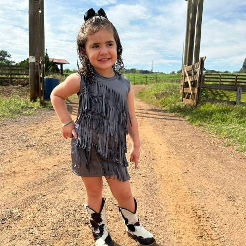 Vestido infantil Country P na ro a com franjas Mocinha P na Ro a PNR216