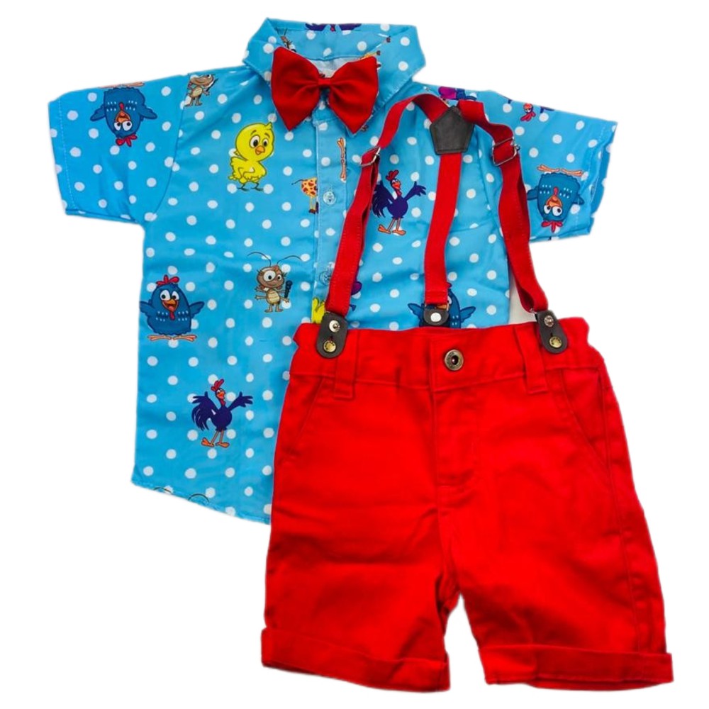 CONJUNTO festa GALINHA PINTADINHA roupa tematica de menino Camisa