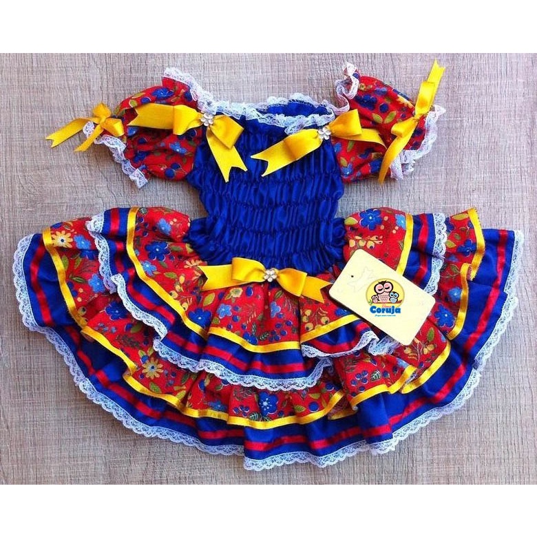 vestido junino festa junina infantil vermelho azul babado 4 anos