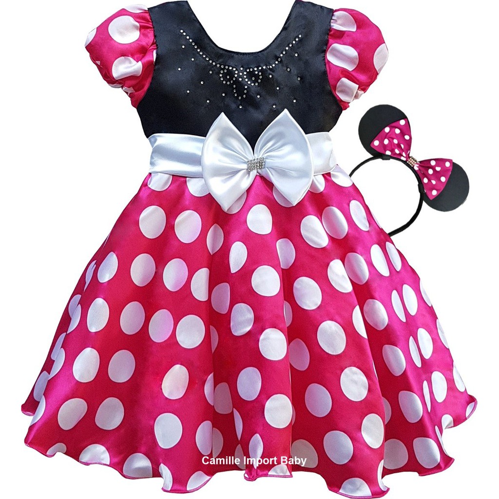 Modelo de vestido clearance da minnie rosa, Vestido Minnie Rosa Festa Infantil Luxo E Tiara pingo de gente clearance