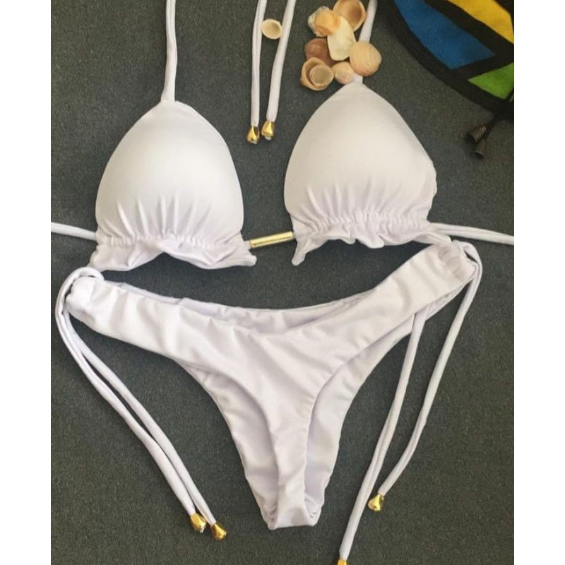 BIQUINI CORTININHA FIXO SEM BOJO COM CALCINHA FITA BRANCO booh